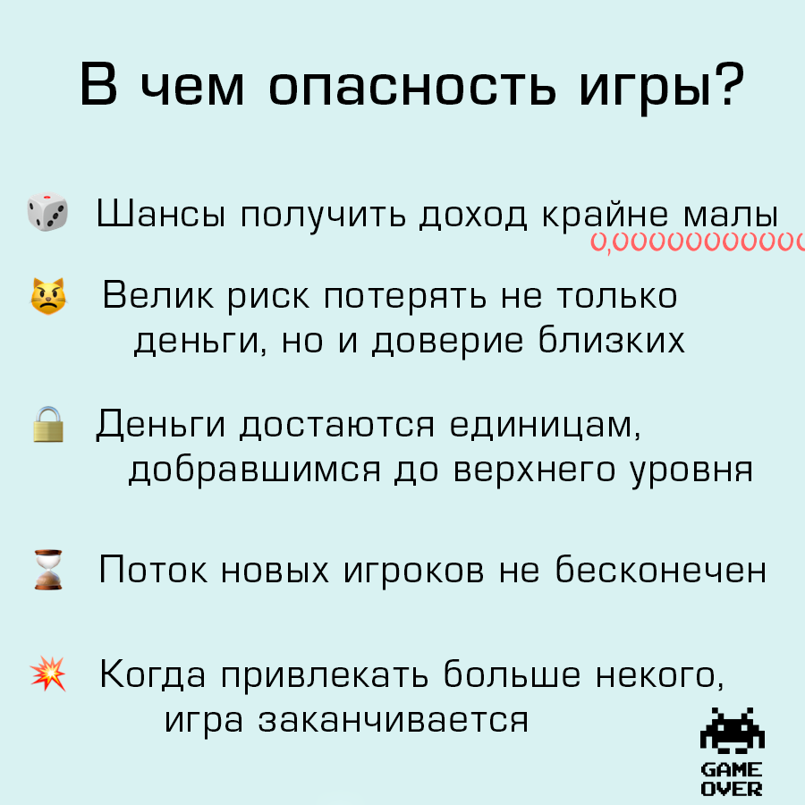 В сети интернет появилось кое-что новенькое: не просто игра на деньги, а нечто похожее на финансовую пирамиду. В ней легко потерять не только деньги, но и друзей. Будьте бдительны, не брезгайте критическим мышлением.