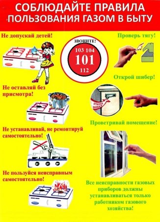 Перед розжигом горелки плиты, водонагревателя или котла проветрите помещение и оставьте форточку открытой в течение всего времени работы прибора; убедитесь, что все краны на газопроводе и газовом приборе закрыты, в помещении не чувствуется запаха газа; проверьте наличие тяги в дымоходе при пользовании газовым водонагревателем или отопительным аппаратом. Если тяга отсутствует, то розжиг прибора производить нельзя. Для определения и устранения причины следует обратиться в обслуживающую организацию.