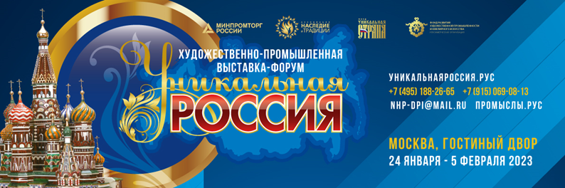 С 24 января по 5 февраля 2023 года в Выставочном центре «Гостиный двор» в Москве пройдёт III Художественно-промышленная выставка-форум «Уникальная Россия».