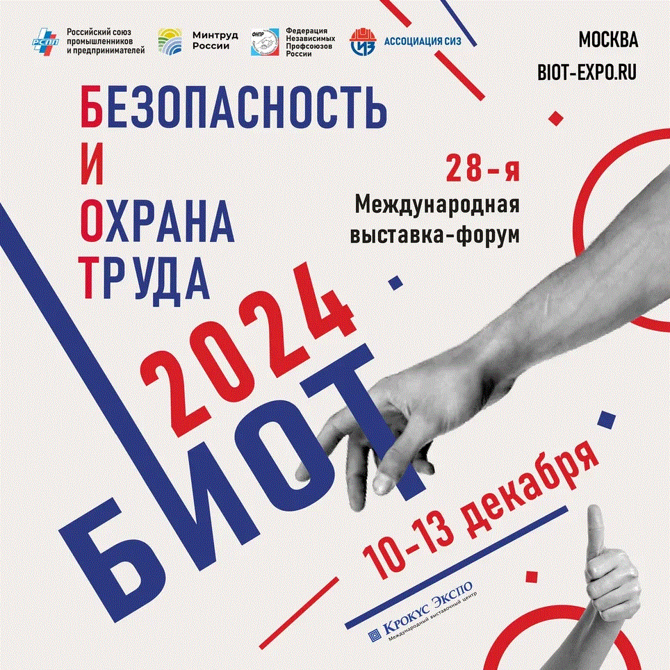 с 10 по 13 декабря 2024 года в Москве на территории МВЦ «Крокус Экспо» пройдет 28-я Международная специализированная выставка - форум «Безопасность и охрана труда» (далее - БИОТ).
