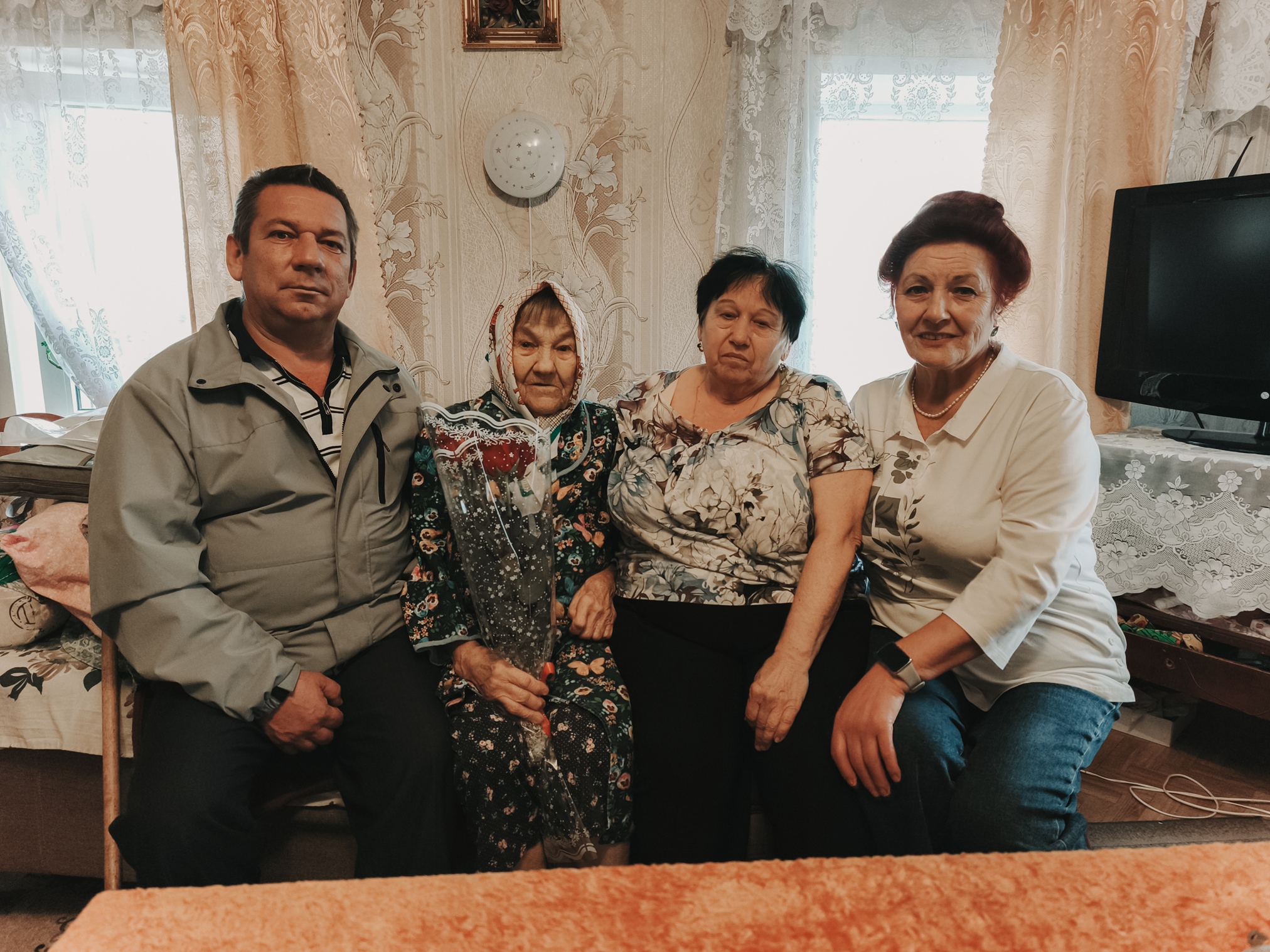 "Я очень благодарна своей семье за поддержку. Дети заботятся обо мне, помогают в быту - это самое ценное. Я горжусь тем, что прожила 90 лет, и благодарна за все радости жизни, несмотря на трудности".