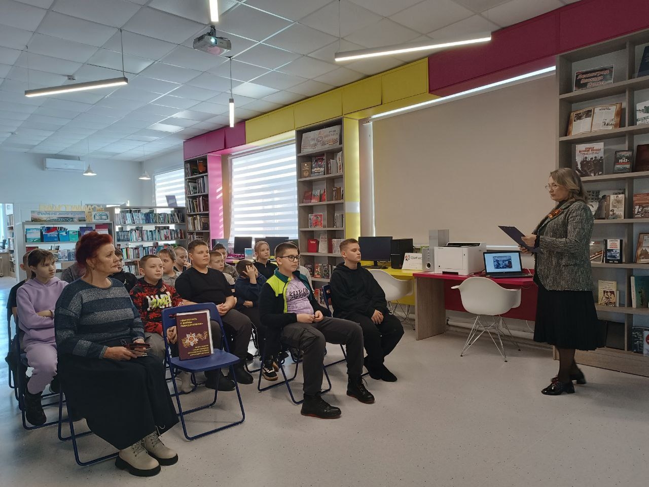 Сначала заведующий сектором обслуживания Светлана Николаевна Семёнкина познакомила ребят с ключевыми событиями Сталинградской битвы и рассказала о героизме советских воинов.