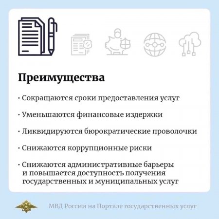 Эти и многие другие удобства делают портал «Госуслуги» по линии МВД России привлекательным и удобным средством взаимодействия полиции и граждан.