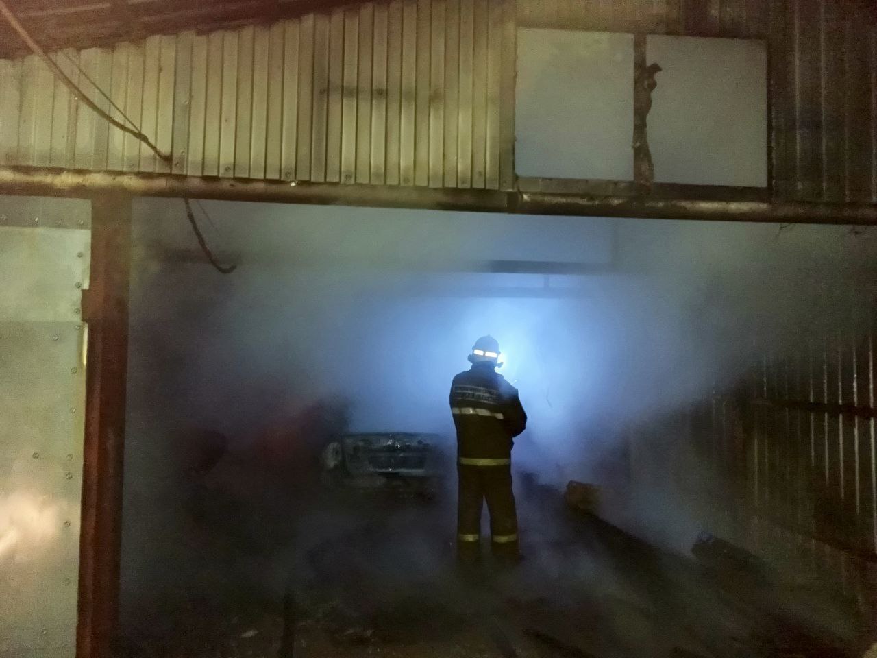 В выходной день открытым пламенем горел гараж с автомобилем внутри