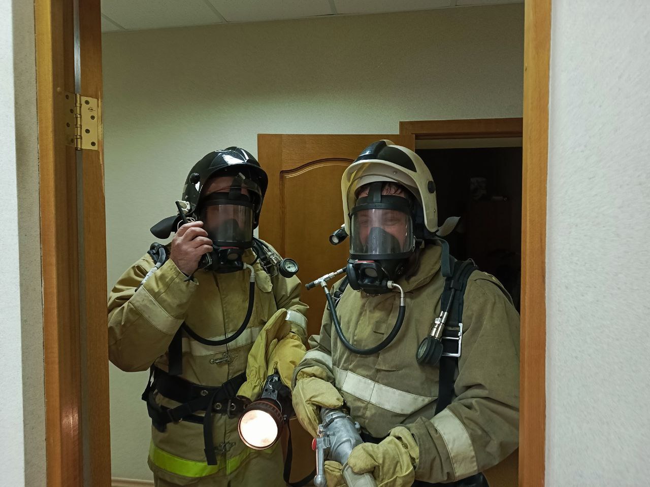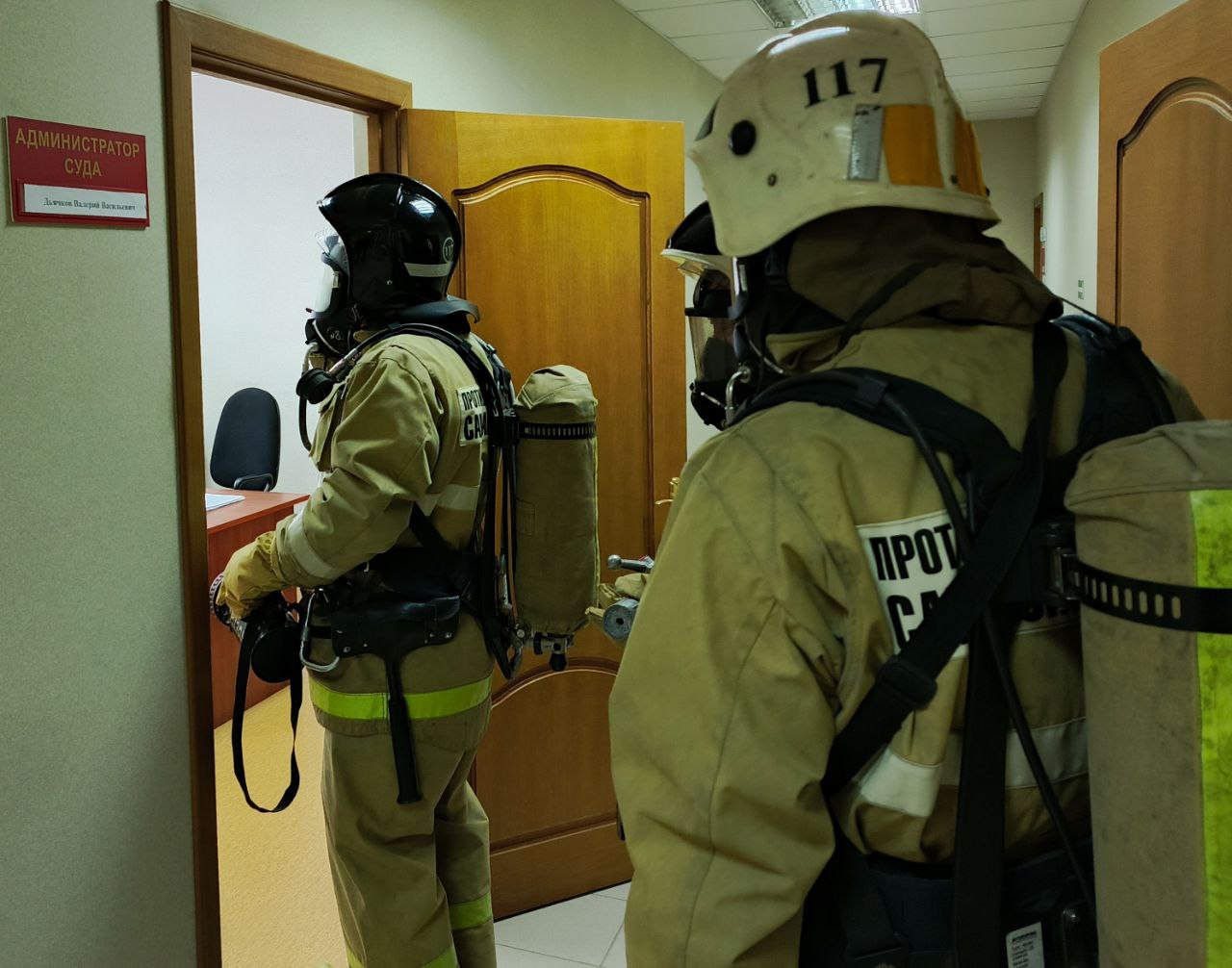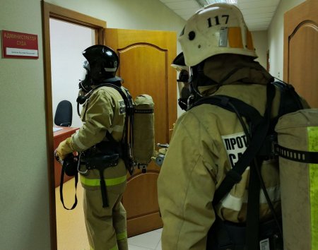 По тактическому замыслу занятий произошло короткое замыкание электропроводки в кабинете администратора здания суда. Прибывшие на место пожарные-спасатели оперативно провели боевое развертывание, предприняли меры по поиску людей внутри здания и последующему их спасению, организовали прокладку рукавных линий для оперативной ликвидации огня и приступили к тушению условного возгорания. Таким образом, поставленные цели и задачи по отработке действий по эвакуации людей и тушению условного пожара звеньями газодымозащитной службы на объекте с массовым пребыванием людей, работники пожарной части №117 Отряда №15 выполнили в полном объеме.