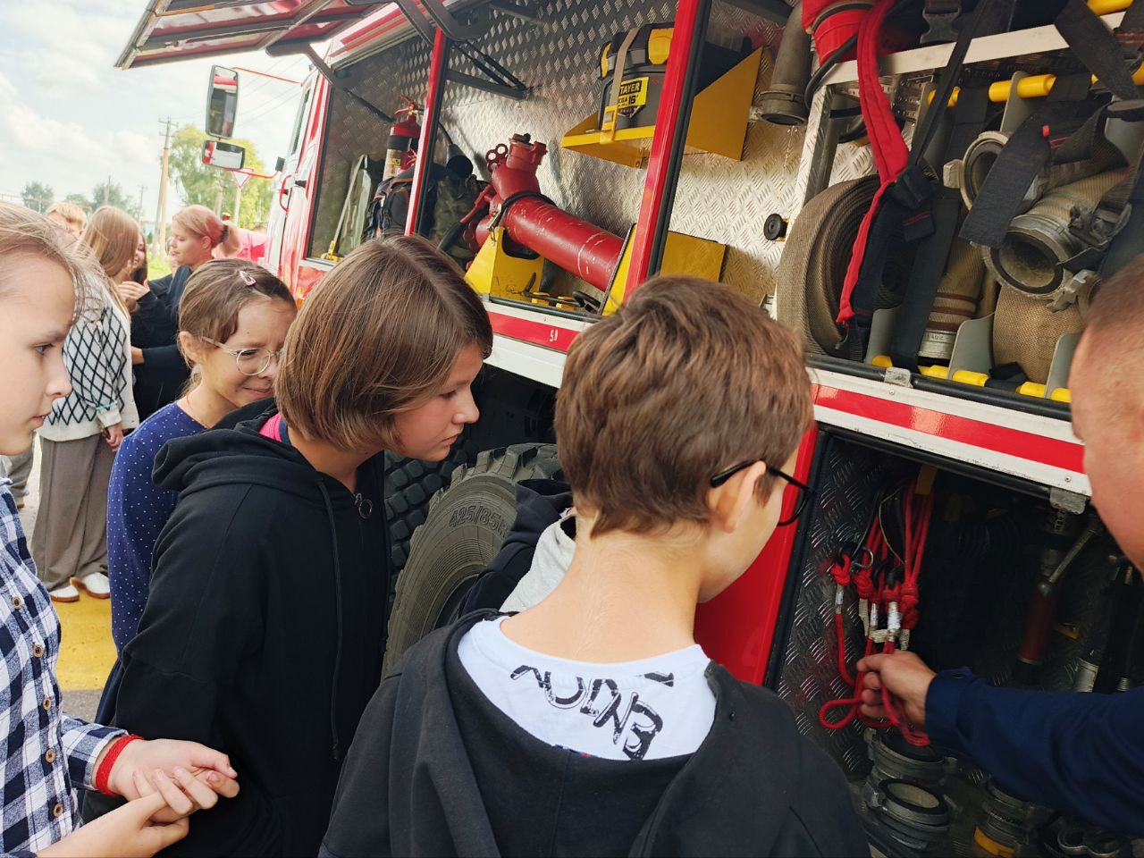 Ветеран противопожарной службы Андрей Гурьянов подробно рассказал школьникам о работе пожарного-спасателя, о пожарной автоцистерне, показал пожарно-техническое вооружение и аварийно-спасательное оборудование, продемонстрировал экипировку, которую ребята с удовольствием примерили и смогли на себе ощутить всю тяжесть боевой одежды огнеборца.