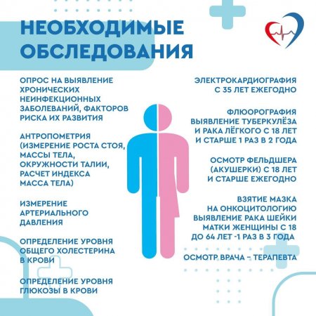 Основная цель обследования — своевременное выявление хронических неинфекционных заболеваний и факторов риска их развития.