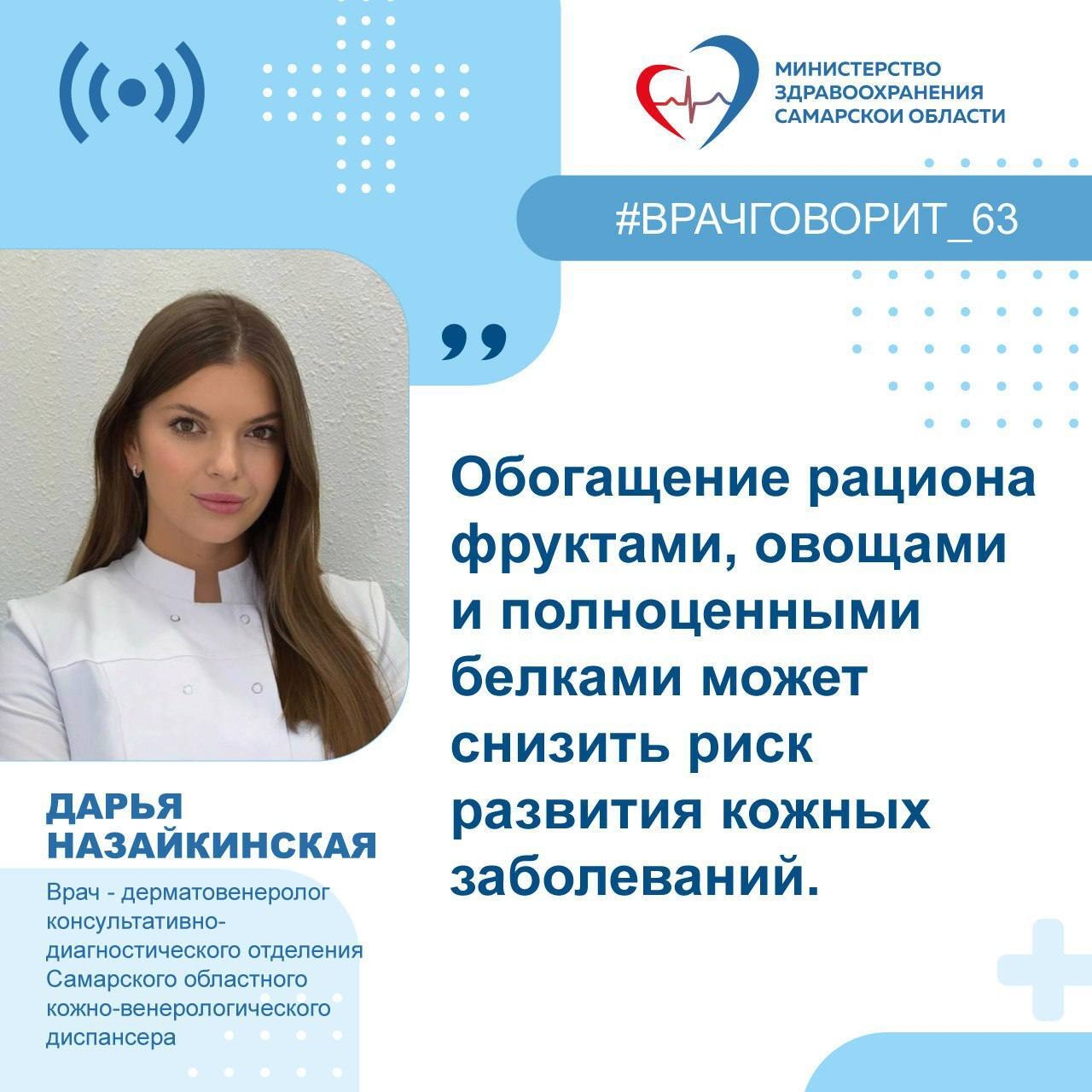 Врач - дерматовенеролог консультативно-диагностического отделения Самарского областного кожно-венерологического диспансера Дарья Назайкинская: