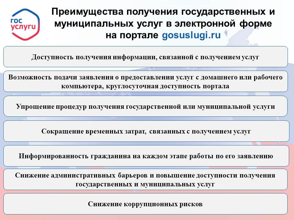 Преимущества получения государственных и муниципальных услуг в электронном виде через ЕПГУ: