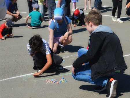 В первой половине дня асфальт на центральной площади РДК «Октябрь» за несколько минут сменил свой привычный серый цвет на яркий и разноцветный. Тема конкурса рисунков на асфальте «Здравствуй, лето!». Детям дается право выразить свой детский мир через изобразительное искусство, где преобладает, конечно, же, лето, семья, отдых, каникулы.